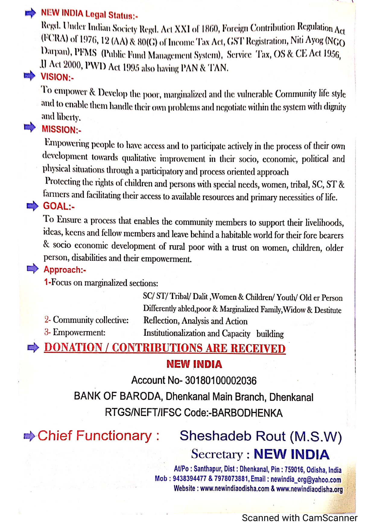 NEW INDIA is a State level Social Welfare & Cultural Development Civil Society Organization